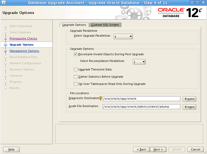 catupgrd.sqlhas been replaced with the newcatctl.plParallel Upgrade Utility script which provides the ability to run upgrade scripts in parallel taking advantage of spare CPU capacity which can potentially reduce upgrade times